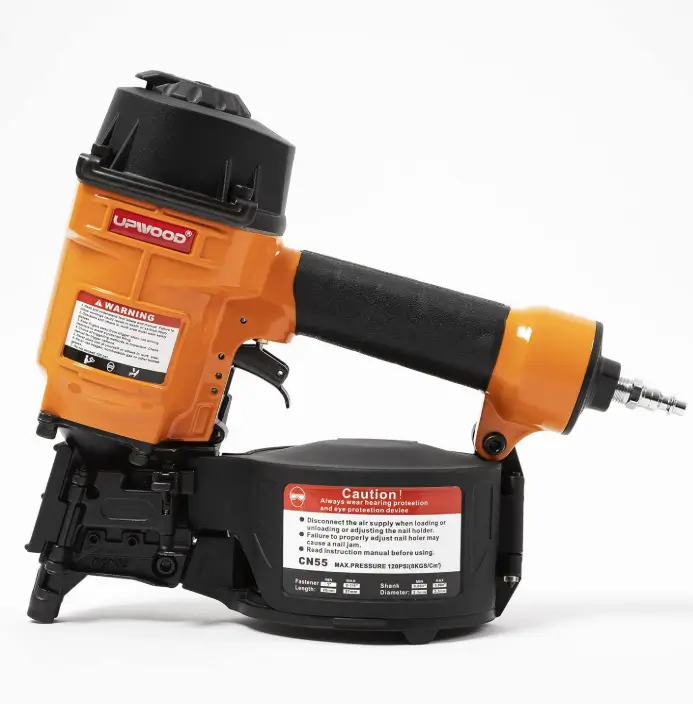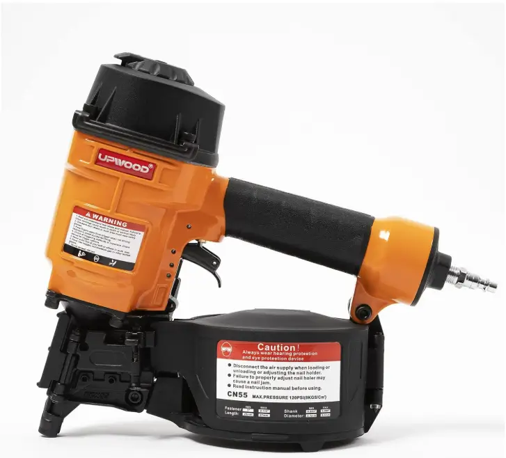 The CN55 Air Coil Nailer is designed for fast and efficient nailing in fencing, framing, decking, pallet work, siding, and other construction tasks. It supports 1 inch to 2-1/4 inch nails and uses a 15-degree coil system, allowing users to work longer with fewer reloads. Its pneumatic power helps drive nails quickly and consistently, making it a practical choice for high-volume jobs. With its fast shooting performance and durable working design, this coil nailer helps buyers save time, improve productivity, and complete demanding projects with confidence