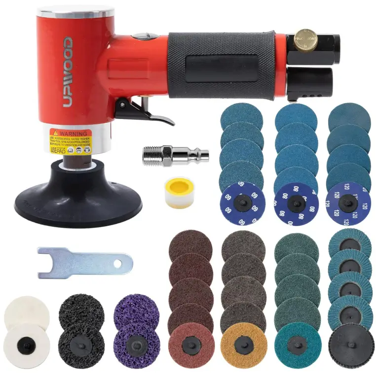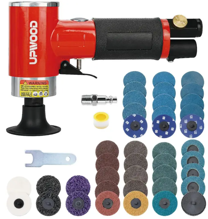 UPWOOD 3inch Air Sander Angle Grinder with Roll Lock Wheel Set, Pneumatic Polishing Tool with 41pcs 3-inch sanding discs